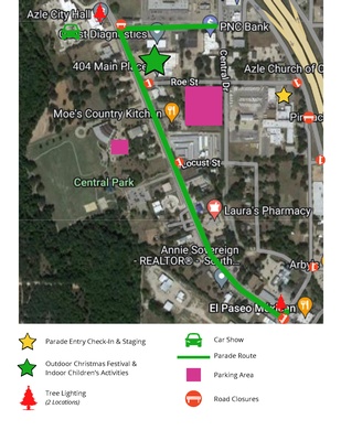 - 10 a.m. - 3:00 p.m. - Christmas Car Show (Hosted by: Azle Lion's Club-behind City Hall)